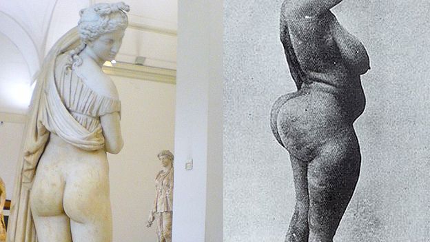 A Vênus de nádegas belas e as curvas de uma mulher esteatopigia